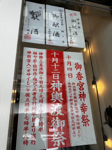 10/2 御香宮神幸祭 スケジュール 準備着々 2025/10/2 お店紹介, ごはんの話, イベント・観光 どーも。御香宮前からミナージュです。 2025年度 御香宮神社神幸祭 スケジュールです。 露店準備が始まっています。 期間 10/4土曜日〜10/12日曜日 昼から20時くらいまで境内には毎日露店が並びます。 10/4土曜日 9時半くらい ちびっ子相撲 18時くらいから 花傘パレード 10/12日曜日 朝から晩まで獅子、神輿が街を練り歩きます。 お楽しみに^ ^